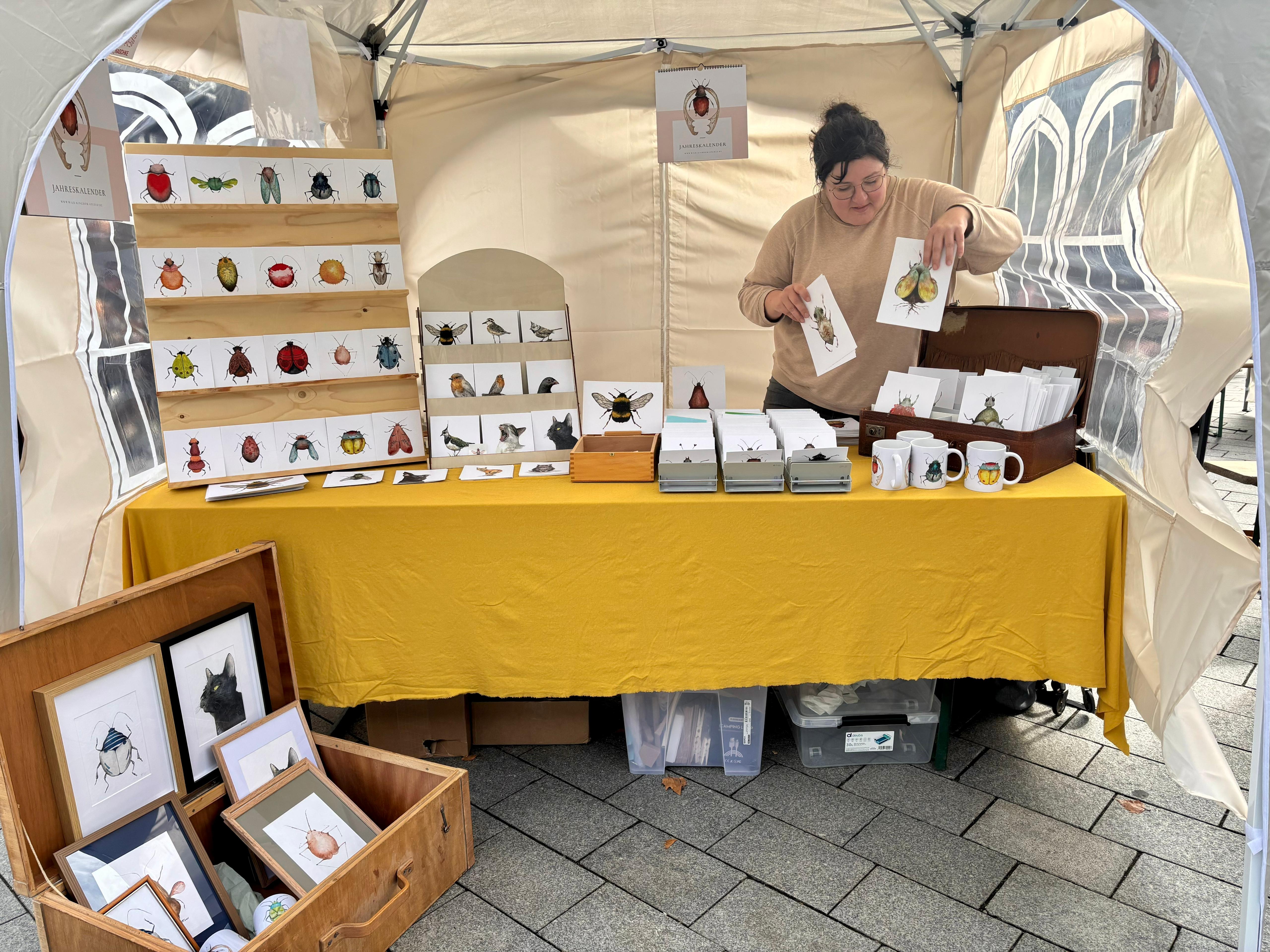 Über 200 Käfer hat @me_ina_raschke in ihrer Wohnung gesammelt - doch kein einziger ist echt! Die süßen Krabbeltiere entspringen ihrer Fantasie! Handgetuscht hat sie ein ganzes Ökosystem erschaffen - vom Bikini-Käfer bis zur waghalsigen Wanze sind sie so vielseitig wie die Natur selbst - und verschönen bald Deine eigenen vier Wände! Die Drucke dieser wunderschönen Edelinsekten kannst Du exklusiv am 12.09.2025 im Schnoor One kaufen!